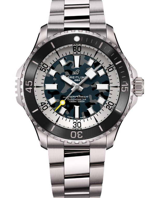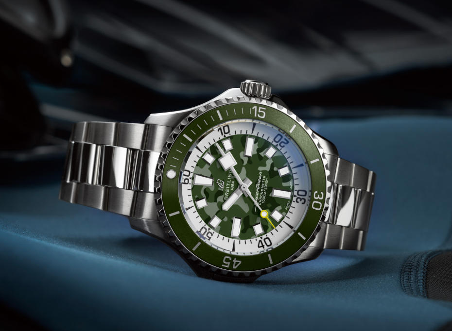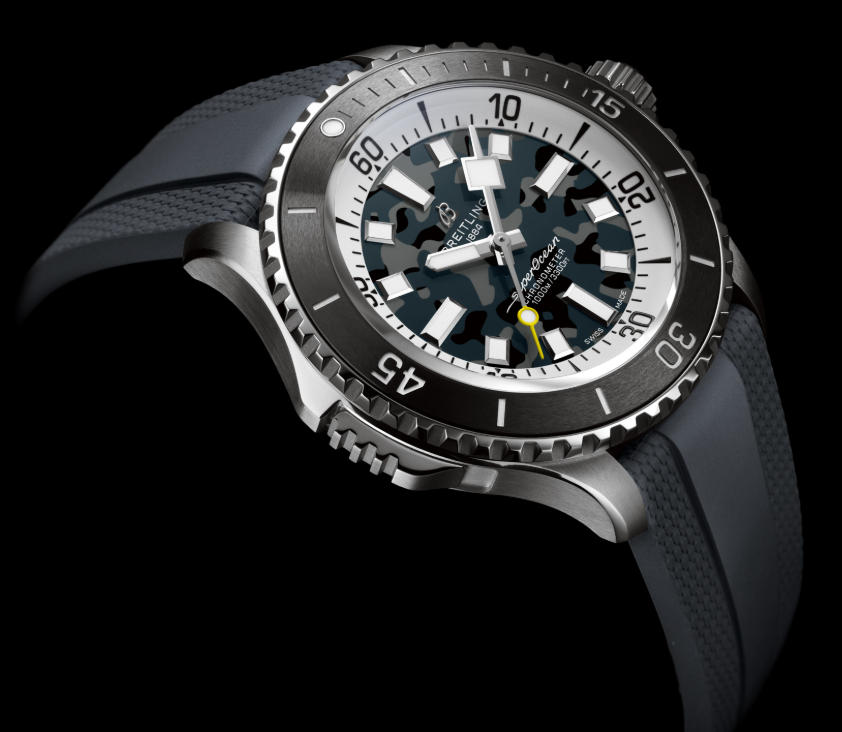 At the time of launch, the new 1:1 clone Breitling Superocean Automatic 46 Super Diver watches is available in either green or black, and both versions feature dials with a camouflage pattern throughout their surfaces. Aside from their different colorways and finishing, the actual design of the dials is the same as what can be found throughout the rest of the current-production Superocean collection, with a time-only layout, applied hour markers, and a large contrasting minute track surrounding the periphery of the display. The overall design of this latest generation of Superocean watches is inspired by the vintage Breitling Superocean Slow Motion from the 1960s and 1970s; however, it reinterprets the aesthetic to be a classic three-handed dive watch, rather than a chronograph like the original vintage model. Additionally, just like the rest of the Superocean lineup, the new Superocean Automatic 46 Super Diver features Super-LumiNova on all of its hands and indexes (plus the zero-marker on the bezel) to provide users with easy access to the time in dark settings.